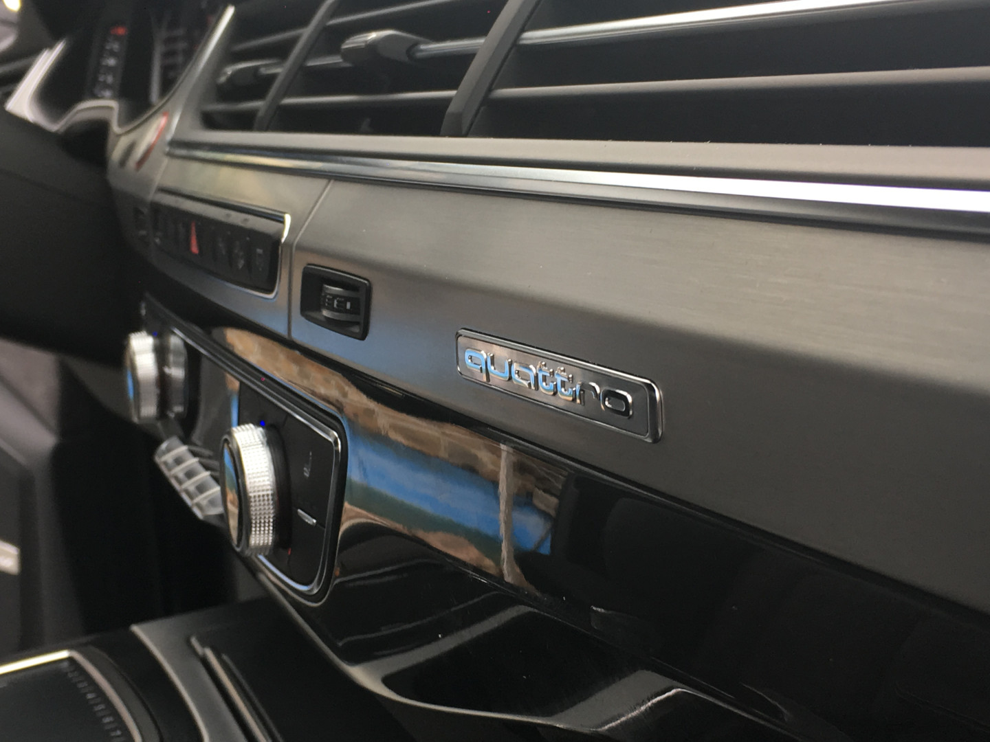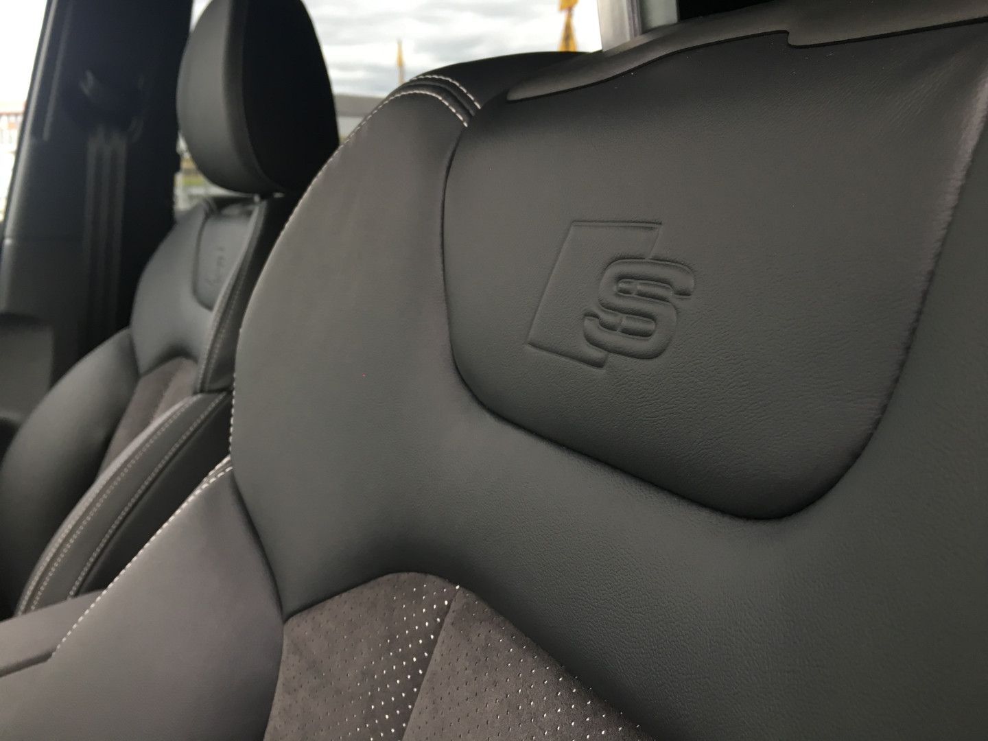 ⮚ Alcantara perforowana/skóra z tłoczeniem S na oparciach przednich foteli